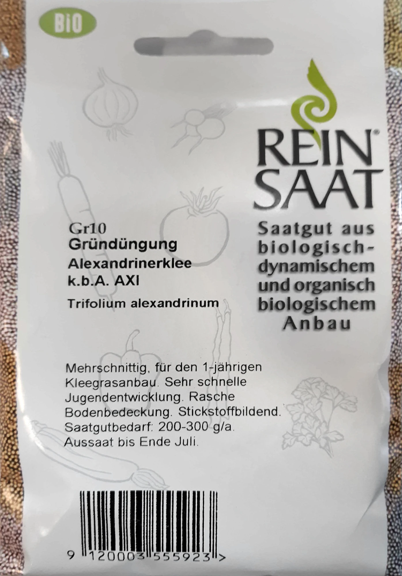 Mehrschnittig, für den 1-jährigen Kleegrasanbau. Sehr schnelle Jugendentwicklung. Rasche Bodenbedeckuckung. Stickstoffbildend. Saatgutbedarf: 200-300 g/a. Aussaat bis Ende Juli. Friert nicht sicher ab.
