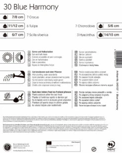 Die Blumenzwiebelmischung Colour Symphony „Blue Harmony“ von Kiepenkerl wird von den Farben Blau, Lila und Purpur dominiert. Enthalten sind Zwiebeln für Krokusse, Tulpen, Blausterne, Sternhyazinthen und Traubenhyazinthen, die von Februar bis Mai abwechselnd oder zeitgleich in Blüte stehen. Die in ihrer Gesamtheit nahezu mystisch anmutenden Blumen werden 10 bis 45 cm hoch und sind neben der Beetkultur auch für die Anzucht in Pflanzgefäßen geeignet. Zur Blütezeit ziehen die duftenden Blüten eine Vielzahl nützlicher Insekten an, die auf der Suche nach Nektar und Pollen sind. Die mehrjährigen, winterharten Pflanzen verwildern übrigens gut, wodurch der jährliche Blütenflor stetig anwächst.