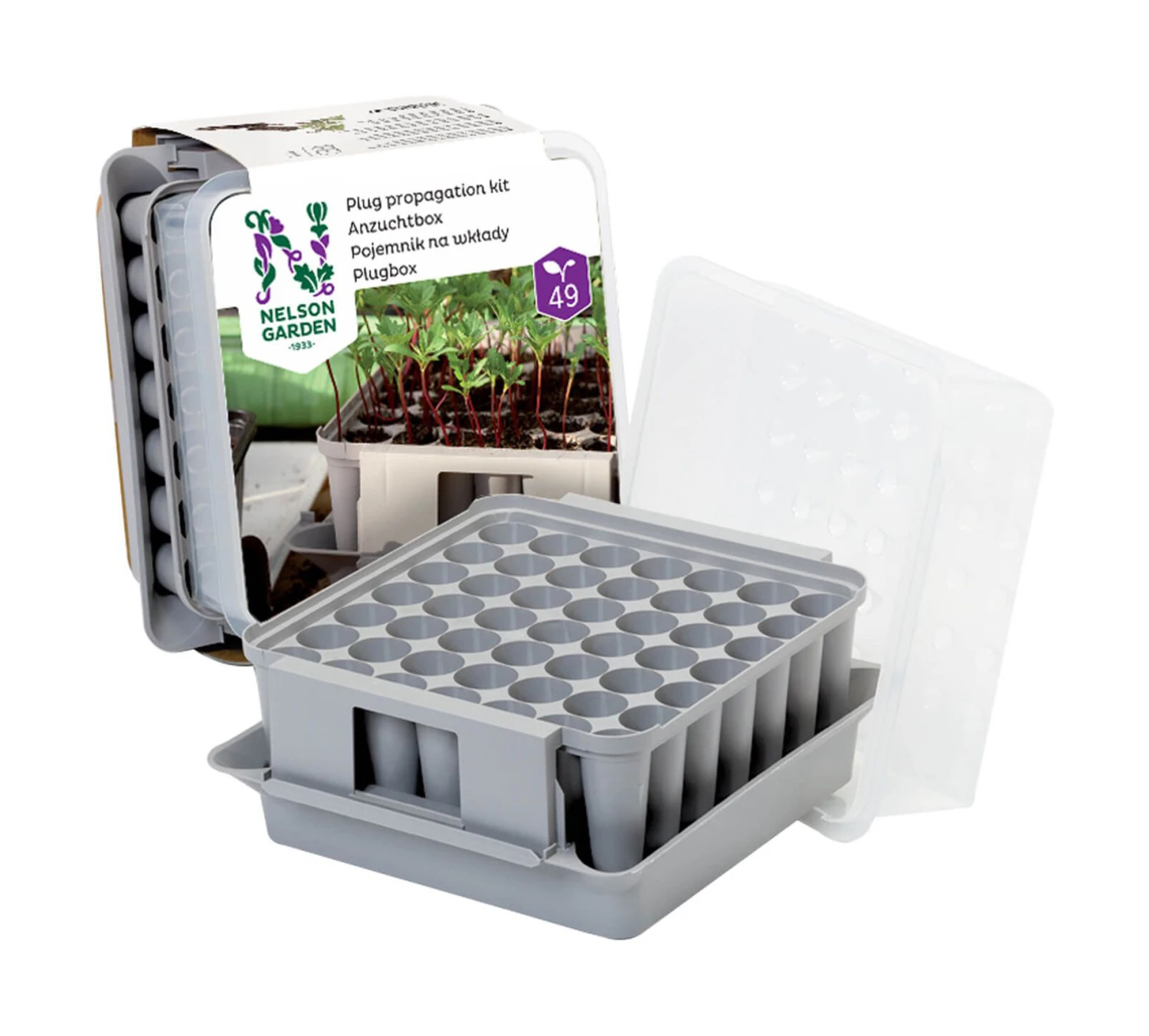 Kompaktes Minigewächshaus für 49 Pflanzen mit tiefem, gutem Wurzelsystem.